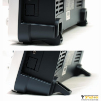 Осциллограф цифровой ADS-2121M можно отнести к гибридным, так как конструкция прибора настольная, но настолько плоская, к тому же, осциллограф может работать от батареи, что это скорее гибрид настольного и портативного (переносного) прибора. Встроенное описание работы с осциллографом отображается на экране (невозможно потерять «Руководство по эксплуатации»).