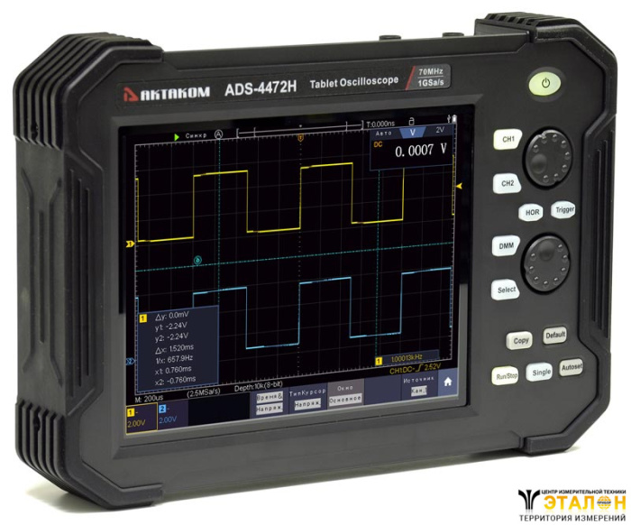 Осциллограф цифровой АКТАКОМ ADS-4472H обладает функциональностью и возможностями, которые присущи настольным моделям. Благодаря своим малым размерам, небольшому весу, большому сенсорному экрану и батарейному питанию, осциллограф ADS-4472H удобен для работы в "полевых" условиях.