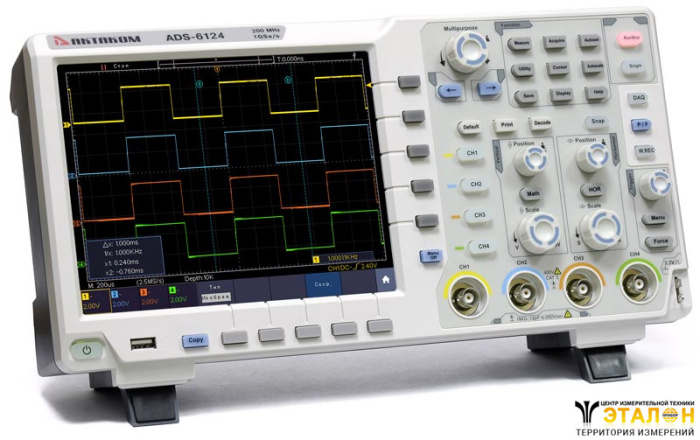Осциллограф цифровой АКТАКОМ ADS-6124H сочетает в себе высокую функциональность и отличные технические характеристики при доступной цене. Функциональные возможности цифрового осциллографа ADS-6124H могут быть расширены путём установки (при предварительном заказе) различных опций. Таким образом, в одном корпусе можно объединить несколько приборов: цифровой осциллограф, анализатор протоколов, цифровой мультиметр.