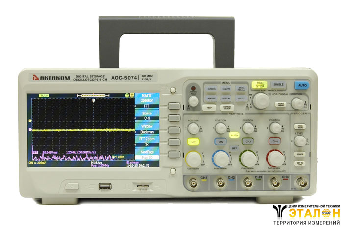 Четырёхканальный цифровой осциллограф AKTAKOM АОС-5074 имеет неординарные технические характеристики и широкие функциональные возможности. Большое количество автоматических измерений, быстрое преобразование Фурье, тестирование в пределах, самописец и многие другие функции в сочетании с широкоформатным дисплеем и русскоязычным меню делают осциллограф цифровой АОС-5074 отличным средством визуального наблюдения и исследования параметров сигнала.