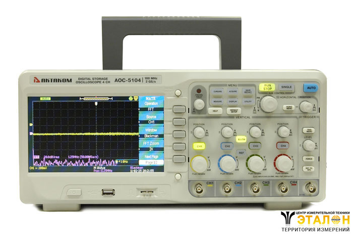 Четырёхканальный цифровой осциллограф AKTAKOM АОС-5104 имеет неординарные технические характеристики и широкие функциональные возможности. Большое количество автоматических измерений, быстрое преобразование Фурье, тестирование в пределах, самописец и многие другие функции в сочетании с широкоформатным дисплеем и русскоязычным меню делают осциллограф цифровой АОС-5104 отличным средством визуального наблюдения и исследования параметров сигнала.