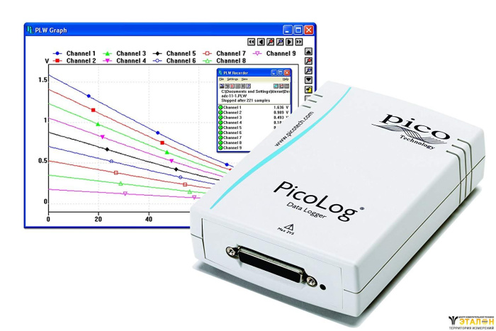 Бюджетная модель PicoLog 1012 имеет 12 входных каналов и разрешение 10 бит.