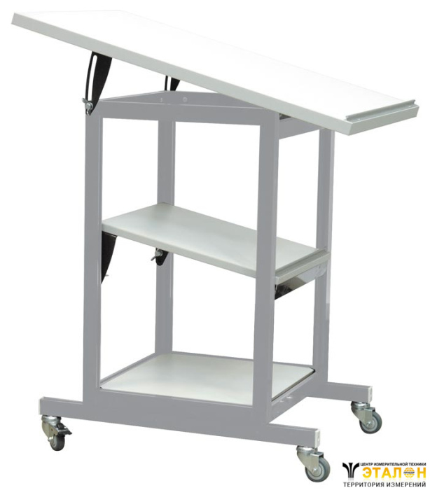 Наличие у подкатного столика АКТАКОМ АРМ-5153-9-ESD двух полок под столешницей позволяет разместить оборудование или аксессуары, что очень удобно при перемещении подкатного стола между разными рабочими местами, причём для одной полки и столешницы предусмотрена возможность регулировки угла наклона (до 15°).