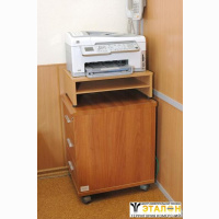 Полка-подставка АРМ-5002 под офисную технику (монитор, принтер, факс, DVD-плеер), с полочкой для документов, модема, пультов от ТВ). На 4-х круглых прорезиненных ножках. Края отделаны ПВХ-кромкой. Габариты (ШхГхВ) 480х350х170 мм. Полочка разделяет АРМ-5002 на 2 секции размерами (ШхДхВ) 445х350х60 мм и 445х350х80 мм. По заказу клиента полочка может быть выдвижной (платная опция). Цвет ДСП - "бук".