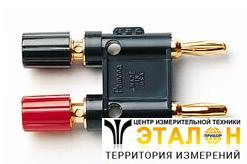 Позолоченные контакты. Адаптер: двойной штепсель типа «банан» - зажим под клеммы с гнездом типа «банан». Максимальное напряжение 2500 Впост, максимальный ток 15 А, максимальная температура +50 °С. Материал зажимов и штепселя: латунь с никелированным покрытием, пружины – бериллиевая медь с никелированным покрытием. Изолятор – поликарбонат.