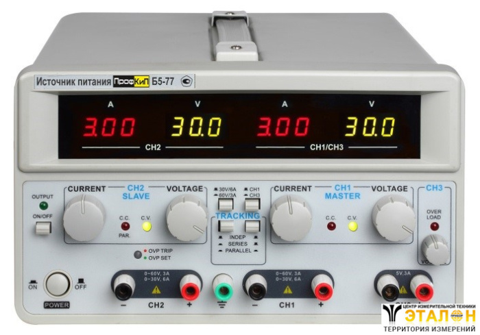 Источники питания ПрофКиП Б5-77 предназначены для питания стабилизированным напряжением и током узлов, и схем радиоэлектронной аппаратуры, при проведении работ в процессах наладки, ремонта и лабораторных исследований. Источники питания отличаются от аналогичных моделей малым уровнем шумов и пульсаций выходного напряжения и тока. Приборы включены в государственный реестр средств измерений РФ и допущены к применению в сфере метрологического контроля.