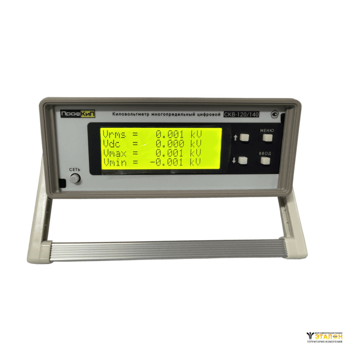 | Диапазон измерения среднеквадратических значений напряжения переменного тока синусоидальной формы частотой 50 Гц | 2.000 кВ … 26.000 кВ 26.01 кВ …120.00 кВ |