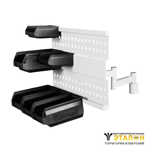 Система позволяет размещать приборы, инструмент, мелкие комплектующие в лотках в удобном для пользователя положении. Кронштейн крепится на боковые стойки всех стандартных серий рабочих мест.