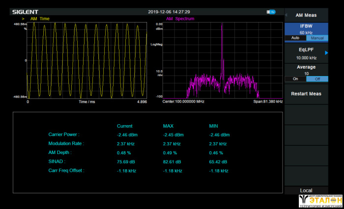 SSA3000XP-AMA опция — прибор с отличным соотношением функциональности и надежности. Он полностью оправдывает свою стоимость, демонстрируя минимальную погрешность при измерении электромагнитных колебаний в определенной полосе частот. Поэтому нашел применение в самых разных отраслях, связанных с диагностикой, настройкой и техническим обслуживанием радиоаппаратуры и волоконно-оптических систем связи. Производитель АКИП поработал и над массогабаритными характеристиками, на выходе получилась компактная для своего класса модель с удобным кнопочным управлением.