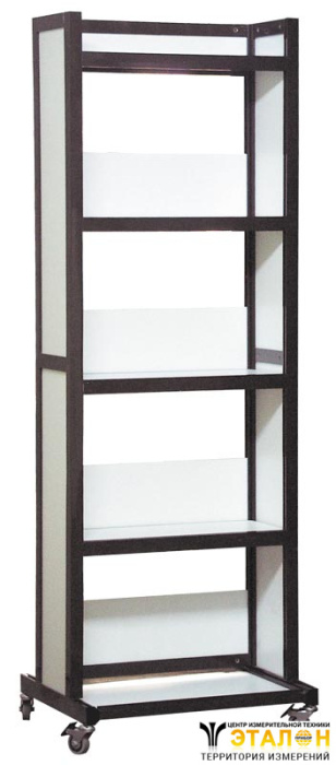 Стеллаж для технической документации. Цвет алюминиевого каркаса - коричневый (RAL-8017), цвет ДСП - белый. Габаритные размеры 55 х 45 х 160 см. Пять открытых полок 49 х 22 см, расстояние между полками 31 см, 4 колеса, два из них с блокировкой.
