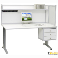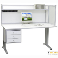 Стол инженера/менеджера АКТАКОМ АРМ-4425 позволяет рационально и удобно организовать рабочее место для эффективной работы. Цвет алюминиевого каркаса - серый (RAL-9006), цвет ДСП - белый. Столешница размером 120 x 80 см обладает высокой ударопрочностью, устойчивостью к истиранию, воздействию химикатов (растворителей и т.д.), а также противостоит воздействию температур до +230 °C. Расстояние от столешницы до пола 750 мм с регулировкой опорами +10 мм. У стола АРМ-4425 имеется перегородка высотой 60 см правосторонняя (левосторонняя - по заказу) и одна полка 120x20 см над столешницей. В стандартной модификации полки фиксированы по высоте. Для освещения рабочего места стол инженера/менеджера АРМ-4425 оборудован двумя светодиодными светильниками по 8 Вт. Для электропитания приборов и другого оборудования предусмотрен блок из 8 розеток с выключателем. Высота 134 см.