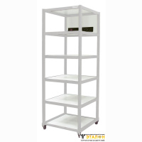 У антистатического стола АРМ-4420-ESD имеется угловая перегородка высотой 60 см правосторонняя (левосторонняя - по заказу) и одна полка 120x20 см над столешницей. Также имеется полка 120х30 см под столешницей. В стандартной модификации полки фиксированы по высоте.