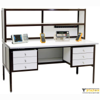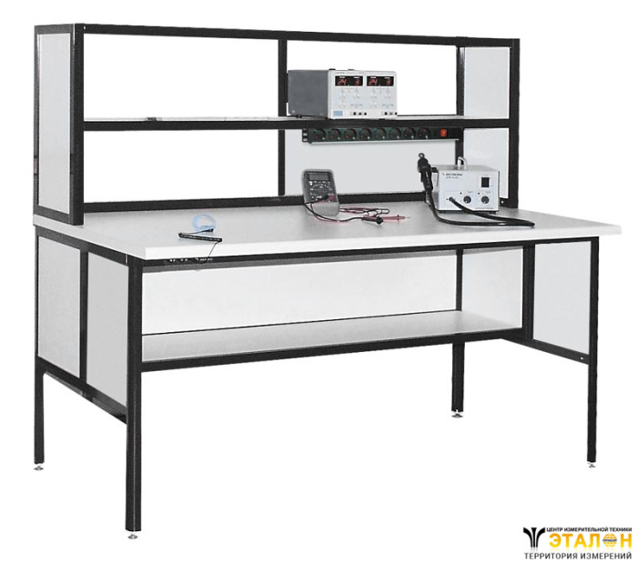 Стол метролога/поверителя АКТАКОМ АРМ-4510 позволяет рационально и удобно организовать рабочее место для эффективной работы. Цвет алюминиевого каркаса - коричневый (RAL-8017), цвет ДСП - белый. Столешница размером 100 x 80 см обладает высокой ударопрочностью, устойчивостью к истиранию, воздействию химикатов (растворителей и т.д.), а также противостоит воздействию температур до +230 °C. Расстояние от столешницы до пола 750 мм с регулировкой опорами +10 мм. У стола метролога/поверителя АРМ-4510 имеются две полки 100x30 см без задней стенки над столешницей, что позволяет удобно расположить измерительные приборы и другое необходимое оборудование. Также есть полка 100х30 см с задней стенкой под столешницей. В стандартной модификации полки фиксированы по высоте. Для электропитания приборов и оборудования предусмотрен блок из 8 розеток с выключателем. Имеются разъемы заземления. Высота 131 см.