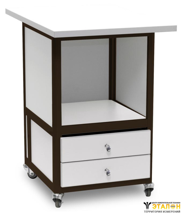 Наличие выдвижных ящиков и полки позволяет разместить оборудование и комплектующие или аксессуары, что очень удобно при перемещении подкатного стола между разными рабочими местами. В этом случае аксессуары (соединительные провода, ЗИП) всегда находятся рядом с местом работы с оборудованием, размещенным на подкатном столе.
