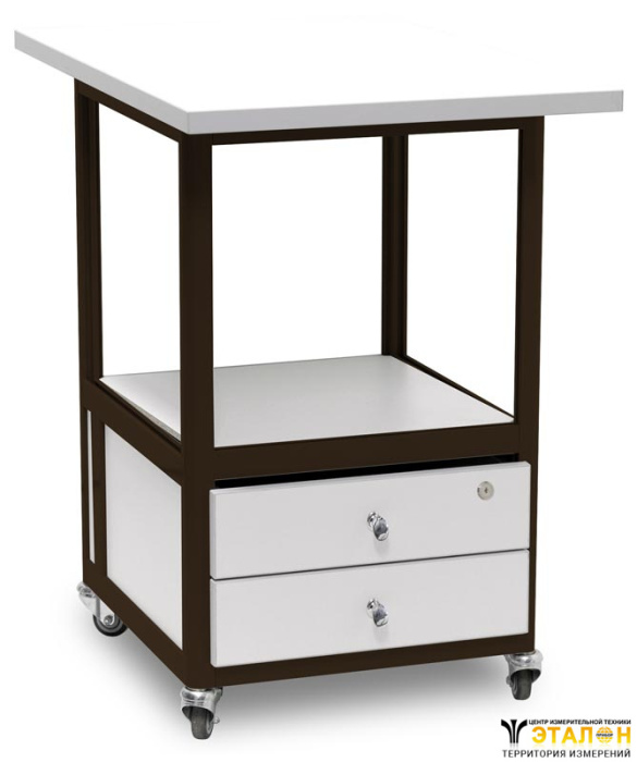 Наличие выдвижных ящиков и полки позволяет разместить оборудование и комплектующие или аксессуары, что очень удобно при перемещении подкатного стола между разными рабочими местами. В этом случае аксессуары (соединительные провода, ЗИП) всегда находятся рядом с местом работы с оборудованием, размещенным на подкатном столе.