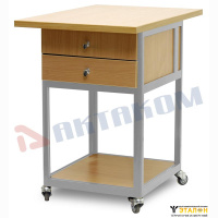 Наличие выдвижных ящиков и полки позволяет разместить оборудование и комплектующие или аксессуары, что очень удобно при перемещении подкатного стола между разными рабочими местами. В этом случае аксессуары (соединительные провода, ЗИП) всегда находятся рядом с местом работы с оборудованием, размещенным на подкатном столе.