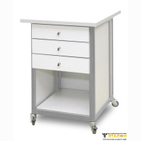 Наличие выдвижных ящиков и полки позволяет разместить оборудование и комплектующие или аксессуары, что очень удобно при перемещении подкатного стола между разными рабочими местами. В этом случае аксессуары (соединительные провода, ЗИП) всегда находятся рядом с местом работы с оборудованием, размещенным на подкатном столе.