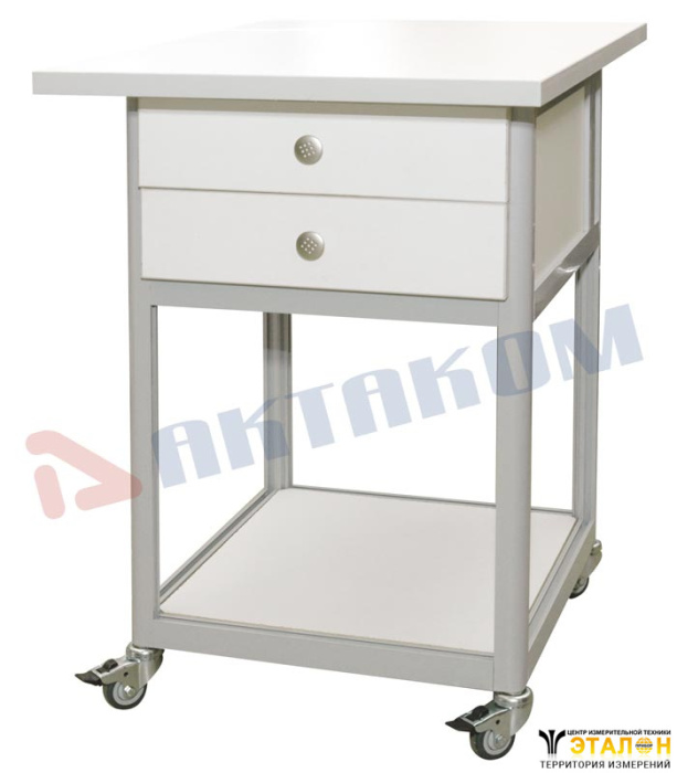 Наличие выдвижных ящиков и полки позволяет разместить оборудование и комплектующие или аксессуары, что очень удобно при перемещении подкатного стола между разными рабочими местами. В этом случае аксессуары (соединительные провода, ЗИП) всегда находятся рядом с местом работы с оборудованием, размещенным на подкатном столе.