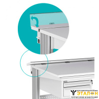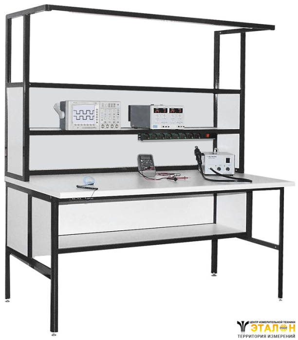 У стола регулировщика АРМ-4210 имеются две полки 100 x 30 см с глухой задней стенкой над столешницей, что позволяет удобно расположить измерительные приборы и прочее оборудование. В стандартной модификации полки фиксированы по высоте, но их можно передвинуть вверх на нужное расстояние (при этом будут просветы между ДСП и профилем). Также имеется одна полка 100 x 30 см с глухой задней стенкой под столешницей. По всей ширине стола установлена кронштейн-штанга, на которой можно разместить подвесной инструмент.