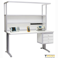 У стола регулировщика АРМ-4215 имеются две полки 100 x 30 см с глухой задней стенкой над столешницей, что позволяет удобно расположить измерительные приборы и прочее оборудование. В стандартной модификации полки фиксированы по высоте, но их можно передвинуть вверх на нужное расстояние (при этом будут просветы между ДСП и профилем). По всей ширине стола установлена кронштейн-штанга, на которой можно разместить подвесной инструмент.