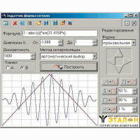 Приложение обеспечивает управление всеми параметрами, доступными для настройки этого типа аппаратуры (см. описание поддерживаемых приборов) и запись данных, задающих форму сигнала, в память прибора. Данные формы сигнала могут задаваться пользователем графически, в виде математической формулы (есть встроенный калькулятор формул) или двоичной последовательности: выбраны из списка стандартных сигналов (синус, прямоугольник, треугольник, пила, вспышка, импульс) или быть загружены из ранее сохранённого файла независимо для каждого канала.