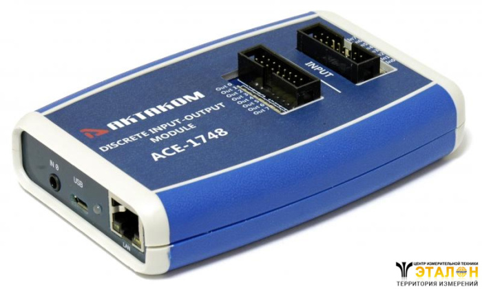 Модуль ввода-вывода ACE-1748 предназначен для построения централизованных систем дистанционного контроля состояния датчиков с дискретными и аналоговыми выходами, а также управления устройствами посредством однопозиционных быстродействующих МОП-реле. Модуль ACE-1748 выполнен в виде приставки к компьютеру – состояние входов и управление выходами осуществляется при помощи внешнего программного обеспечения AKTAKOM Digital IO, устанавливаемого на ПК, работающего под управлением операционных систем линейки Windows.