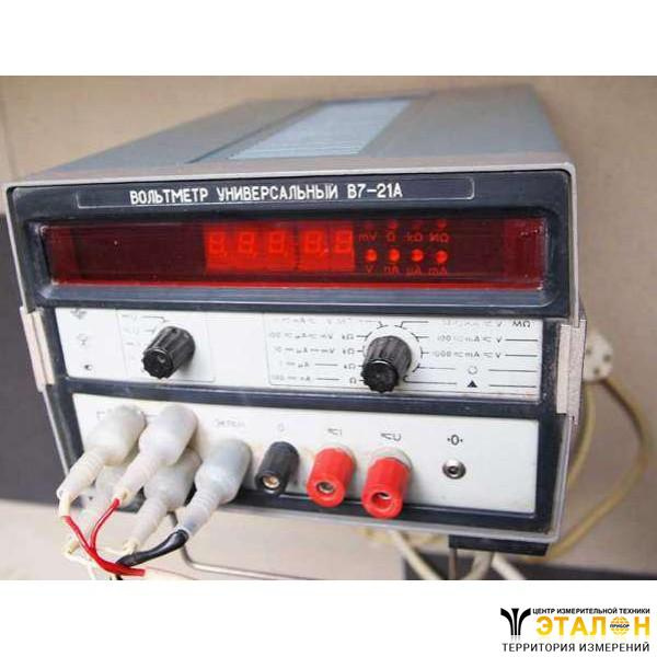 Вольтметр В7-21А универсальный предназначен для измерения: напряжения и силы постоянного тока; напряжения и силы переменного тока; активного сопротивления. Вольтметр может применяться для контроля и измерения указанных параметров при производстве радиоаппаратуры и электрорадиоэлементов, при научных и экспериментальных исследованиях, при проведении ремонтных и регламентных работ.