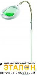 Напольная лампа на изгибающейся ноге с увеличительной линзой. Источник света:42 светодиода. Размер линзы 174×108 мм. Увеличение: 3 диоптрии. Устанавливается на пол, крепится к утяжеленному круглому основанию. Максимальная общая длина ноги лампы 130 см.