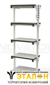 • Базовая комплектация стойки включает в себя 5 полок регулируемых по высоте и электропанель(серии ES на 6 евро розеток).