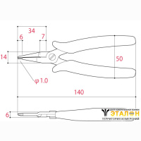 | Общая длина | Ширина головки | Толщина головки | Ширина рукояток | Длина губок | Длина режущей кромки | Диаметр круглой губки | |||