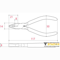 | Общая длина | Ширина головки | Толщина головки | Ширина рукояток | Длина губок | Длина режущей кромки | Диаметр отверстия | |||