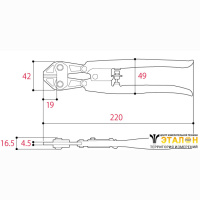 | Общая длина | Ширина головки | Толщина головки | Ширина рукояток | Длина режущей кромки | |||