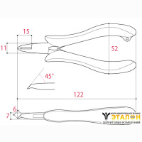 | Общая длина | Ширина головки | Толщина головки | Ширина рукояток | Длина режущей кромки | Угол кромки | |||