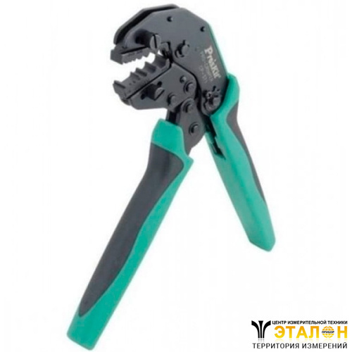 Клещи со сменными губками ProsKit CP-371B оборудован храповым механизмом, что обеспечивает эффективную работу с изолированными и неизолированными наконечниками.
