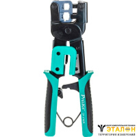 Клещи для обжима ProsKit CP-376ER дополнительно обладает функцией зачистки круглого кабеля. Имеется храповый механизм для уменьшения предельного усилия сжатия.