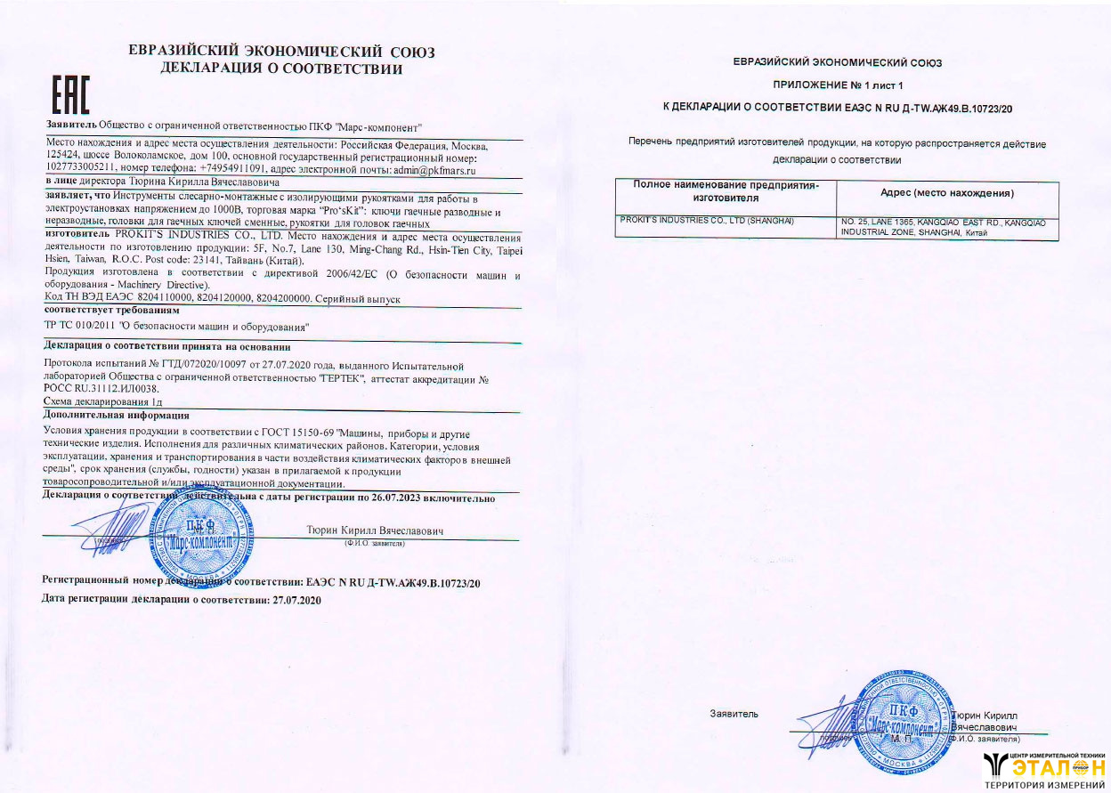 | 1 | Ключ гаечный накидной 13х190мм 1000В ProsKit HW-V213B | 1 |