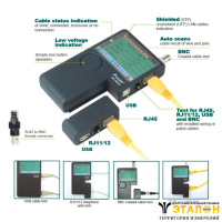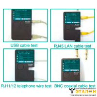 | Тип тестируемого кабеля | RJ-11, RJ-45 (STP И UTP), USB, BNC |