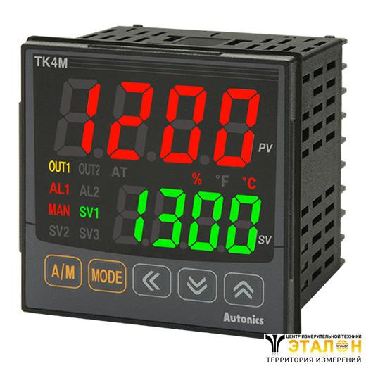 ● Символ «S» обозначает модель с выходом на основе ТТР и функцией управления SSRP (стандартный ключевой режим управления (вкл/выкл), циклическое управление, фазовое управление) Символ «С» обозначает модели с выбираемым токовым выходом или выходом на основе ТТР.● Для управления контурами нагрева и охлаждения следует выбирать опции «R» или «C»; для стандартного контура управления следует выбирать опцию «N».● Вход трансформатора тока (СТ) TK4N доступен только в стандартных моделях, оснащенных выходом аварийной сигнализации 1.● Точность показаний: При комнатной температуре (23°C ±5°C)• Термопары типа K, J, T, N, E ниже -100°C / термопары типа L, U, PLII, терморезисторы RTD Cu 50 Ом, DPt 50 Ом: (PV ± 0,3% или ±2°C, выбирается большее значение) ±1 ед. мл. разряда• В диапазоне температур ниже 200°C для термопар C, G, R, S: (PV ±0,3% или ±3°C, выбирается большее значение) ±1 ед. мл. разряда• В диапазоне температур ниже 400°C для термопар B стандарты погрешности не предусмотрены.◎ За пределами диапазона комнатной температуры• Терморезисторы Cu 50 Ом, DPt 50 Ом: (PV ± 0,5% или ±3°C, выбирается большее значение) ±1 ед. мл. разряда• Термопары R, S, B, C, G: (PV ±0,5% или ±5°C, выбирается большее значение) ±1 ед. мл. разряда• Другие, ниже -100°C: в пределах ±5°CПри использовании устройства серии TK4SP к стандартному значению температуры добавляется ±1°C.● Вес указан с учетом веса упаковки. В скобках указан вес устройства без упаковки.● Условия окружающей среды указываются для условий без замерзания или конденсации.