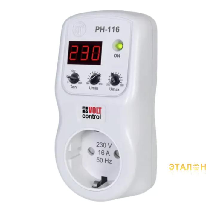 Реле контроля напряжения РН-116 однофазное предназначено для защиты бытовой техники ( оборудования ) мощностью до 3,5 кВт (холодильников, кондиционеров, стиральных машин, теле-аудио техники и т.п.) от недопустимых колебаний напряжения в сети и последствий обрыва нейтрали .