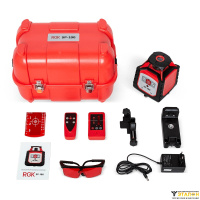 Комплектация: уровень RGK SP-100, пластиковый кейс, руководство на русском языке, пульт ДУ, кронштейн для установки на рейку и крепление, защитные очки, лазерная мишень, приёмник излучения, ЗУ.