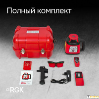 Комплектация: Ротационный лазерный нивелир RGK SP310, приемник излучения, пульт дистанционного управления, кронштейн для установки приемника излучения на рейку, магнитная мишень, руководство пользователя на русском языке, футляр,очки, зарядное устройство.