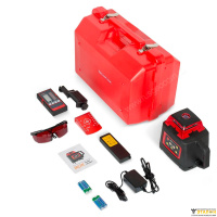 Корпус покрыт прорезиненным пластиком для удобного захвата рукой и смягчения случайных ударов, а головка лазера защищена от ударов и попадания мусора. Масса прибора с аккумулятором — 2 кг, удобная ручка облегчает переноску и установку.