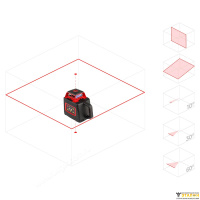 Изменение скорости вращения лазера обеспечивает стабильную видимость линии на всём диапазоне работы и экономию заряда батареи. Ротационный уровень RGK SP-400 поддерживает скорости в 300 и 600 оборотов в минуту. Остановив вращение, можно проецировать статичную точку. Режим сканирования позволяет проецировать сектор с углом 10°, 30° или 60° с одной из двух скоростей, а при остановке фиксирует точку в центре сектора.
