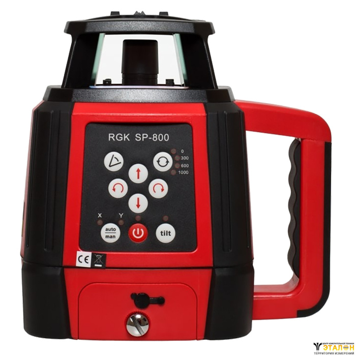 Управление прибора интуитивно просто и осуществляется с помощью понятно маркированных кнопок, а также пульта дистанционного управления, поставляемого в комплекте с нивелиром. Корпус RGK SP-800 оснащён удобной ручкой для переноски, сам прибор имеет небольшой вес и разъём 5/8” для крепления на штатив.