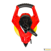 Рулетка RGK R-100 - инструмент для проведения строительных работ и геодезических изысканий с максимальным измерением до 100 м. Комплектное изготовление из стали и нейлона одновременно обеспечивает и высокую износостойкость, и эластичность ленты для удобного измерения. Во избежание получения травмы в инструменте реализован ручной механизм сворачивания ленты, у основания которой также есть специальный зацеп.