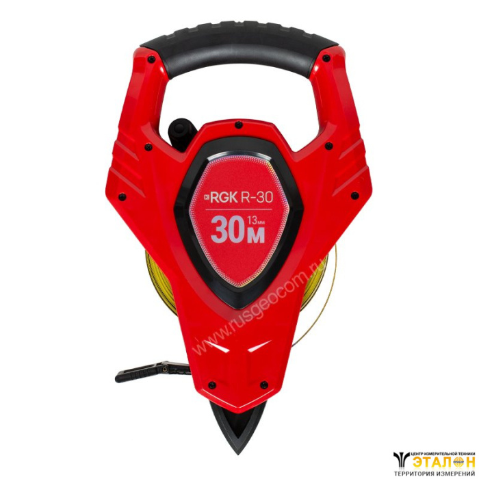 Измерительная рулетка RGK R-30 (с поверкой) длиной 30 метров выполнена в открытом корпусе и снабжена механизмом ускоренного сматывания ленты. Нейлоновое покрытие ленты защищает ее от истирания.