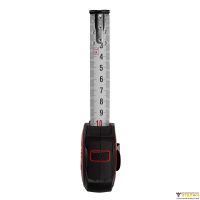 Нанесенное на полотно из высокоуглеродистой стали лакокрасочное покрытие с разметкой защищает от истирания прозрачный слой нейлона. Широкая лента измерительной рулетки за счет вогнутого сечения в рабочем положении сохраняет прямолинейность при вылете до 1,7 м в горизонтальном направлении и до 2,3 м – при выдвижении вверх. Это позволяет выполнять большинство обмеров без задействования помощника.