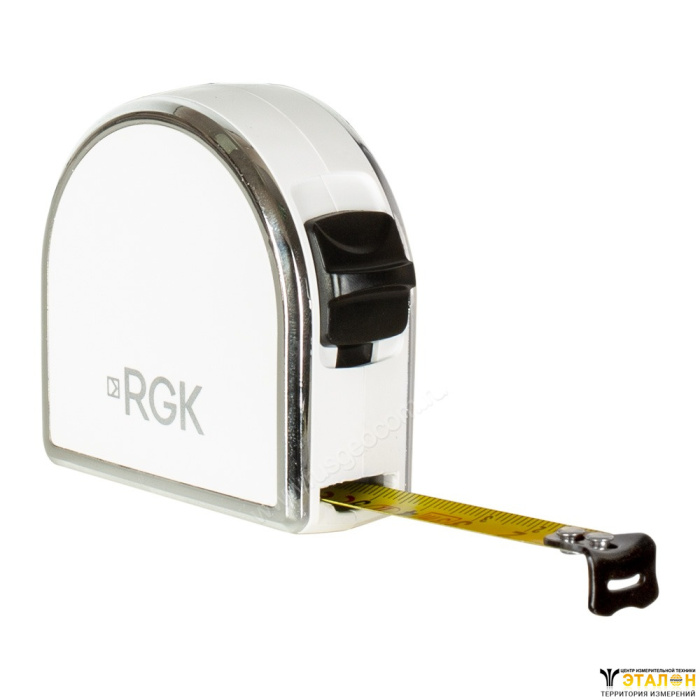 Металлический зацеп, размещенный на конце полотна рулетки RGK RM3, служит для точного совмещения ленты с объектом и легко цепляется за выступающие части различных конструкций.
