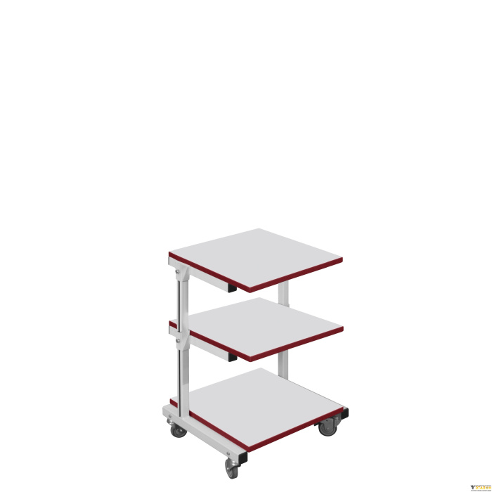 Стойка подкатная промышленная оснащена тремя полками, раздельно регулируемыми по высоте. Конструкция позволяет оснастить стойку дополнительными полками и электропанелью на 6, 8, 12 розеток.