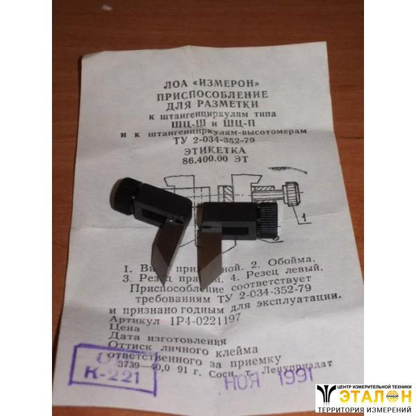 Приспособления для разметки к штангенциркулям типа ШЦ-Ш и ШЦ-П и к штангенциркулям-высотомерам. ТУ 2-034-352-79, 86.400.00 ЭТ